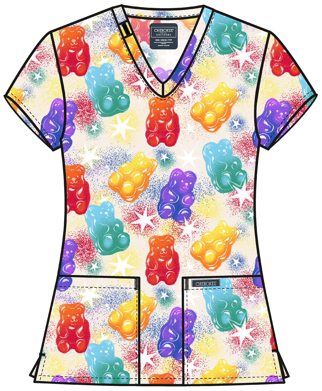 Beary Rainbow Cherokee Scrubs Print V Neck Top CK856 BRRW