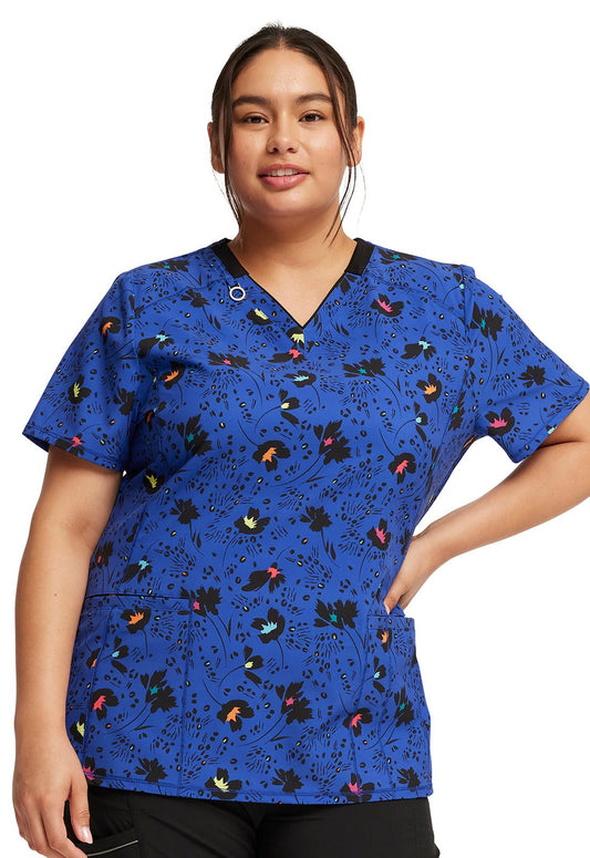 Floral HeartSoul Print Shaped V Neck Scrub Top HS601 LEGG