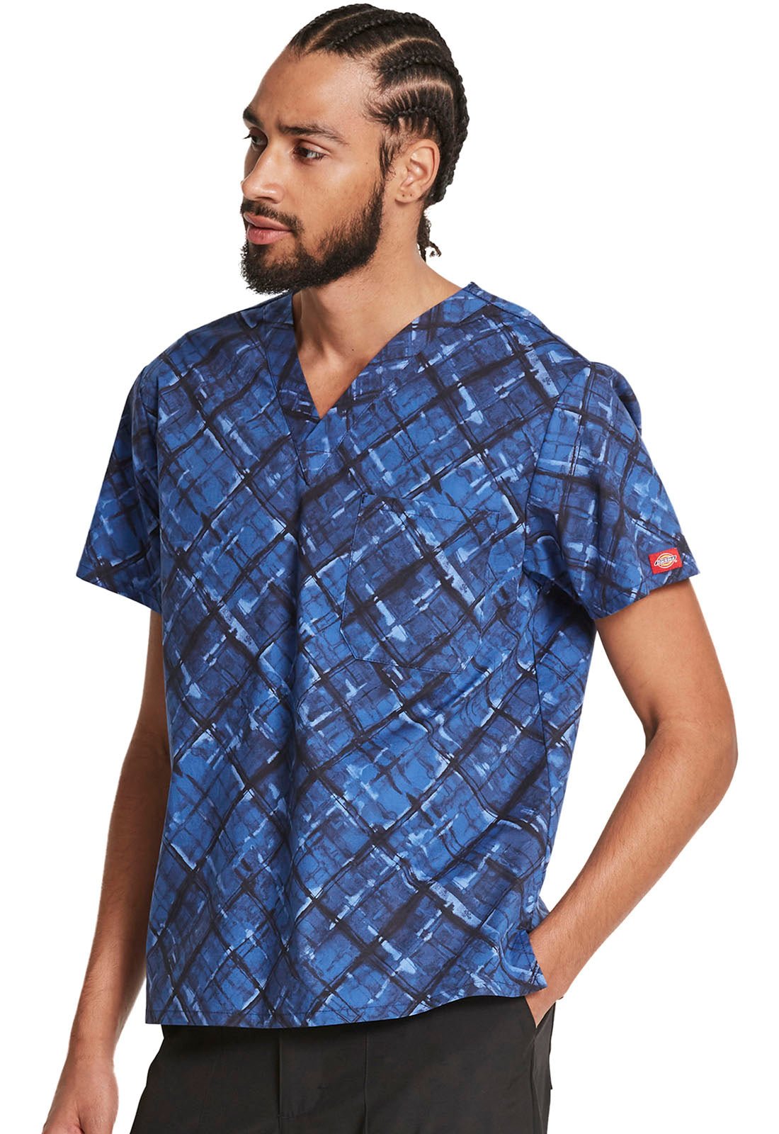 Abstract Print Dickies Men's V Neck Scrub Top DK725 PATD