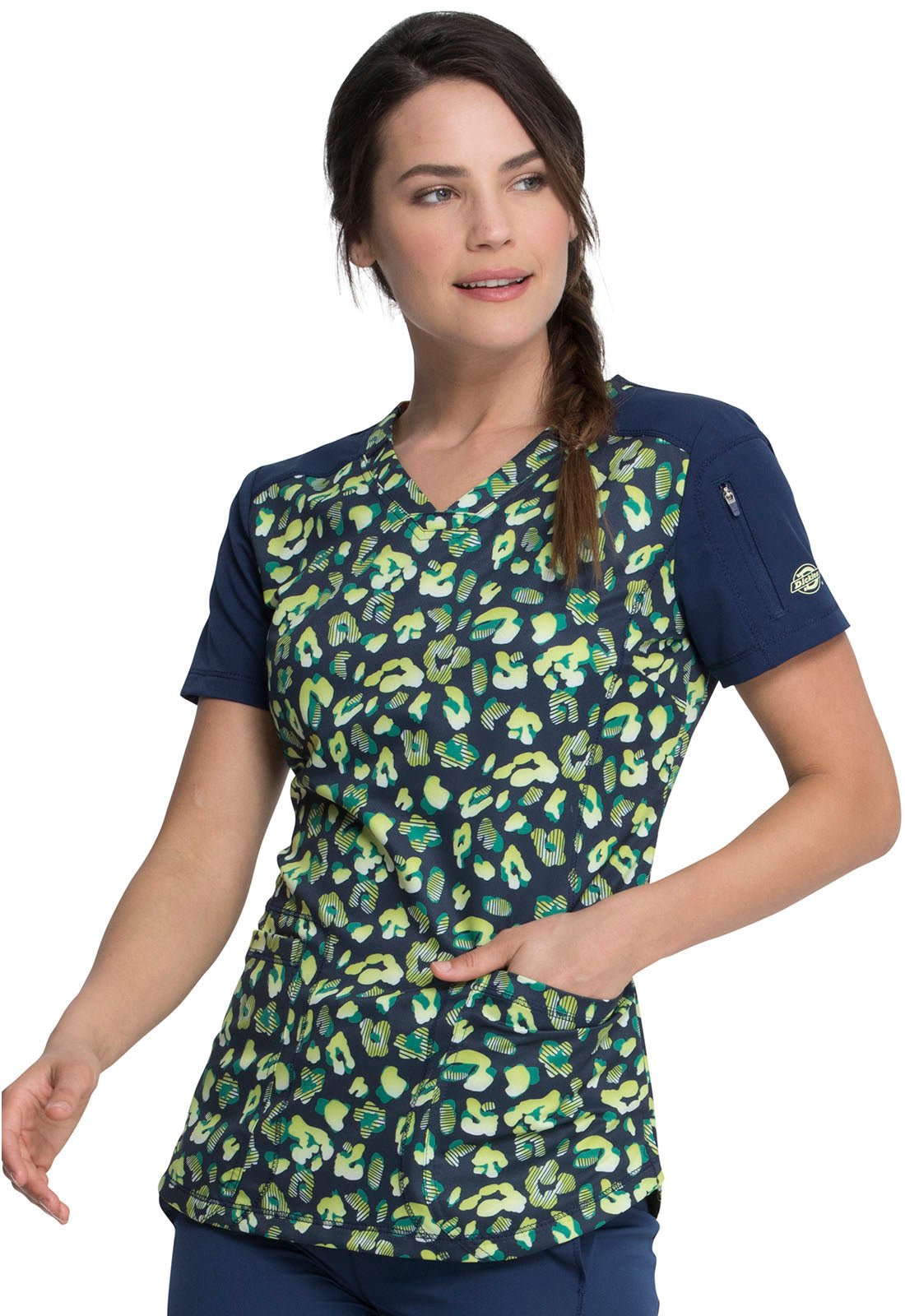 Abstract Dickies Dynamix Print V Neck Scrub Top DK732 ELLD