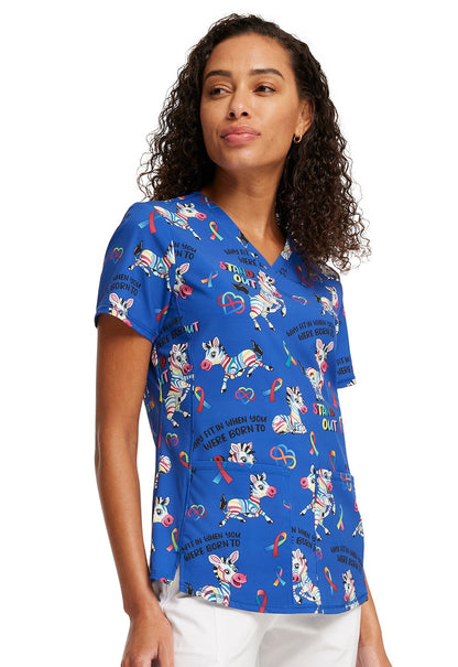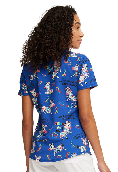 Born To Stand Out Cherokee Autism Awareness Print V Neck Scrub Top CK703 BTSO