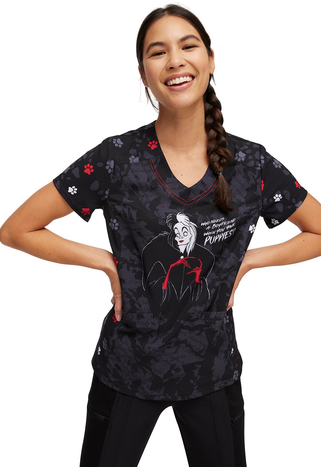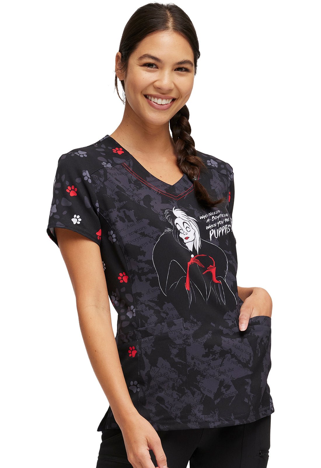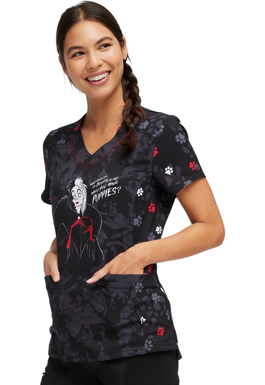 Cruella HeartSoul Print Disney V Neck Scrub Top HS794 VIWN