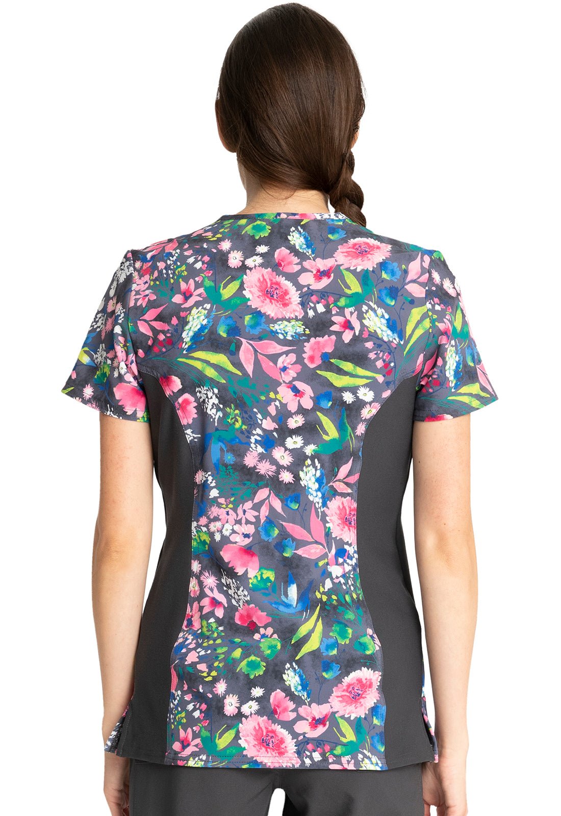 Flower Cherokee iFlex Print Mock Wrap Knit Panel Scrub Top CK642 WCPT