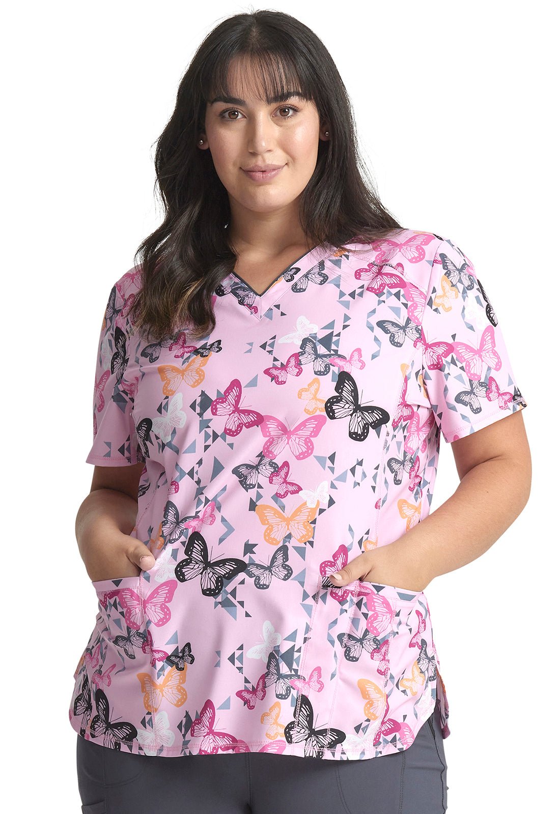 Geo Flutter Cherokee Infinity Print V Neck Scrub Top CK634 GOFT