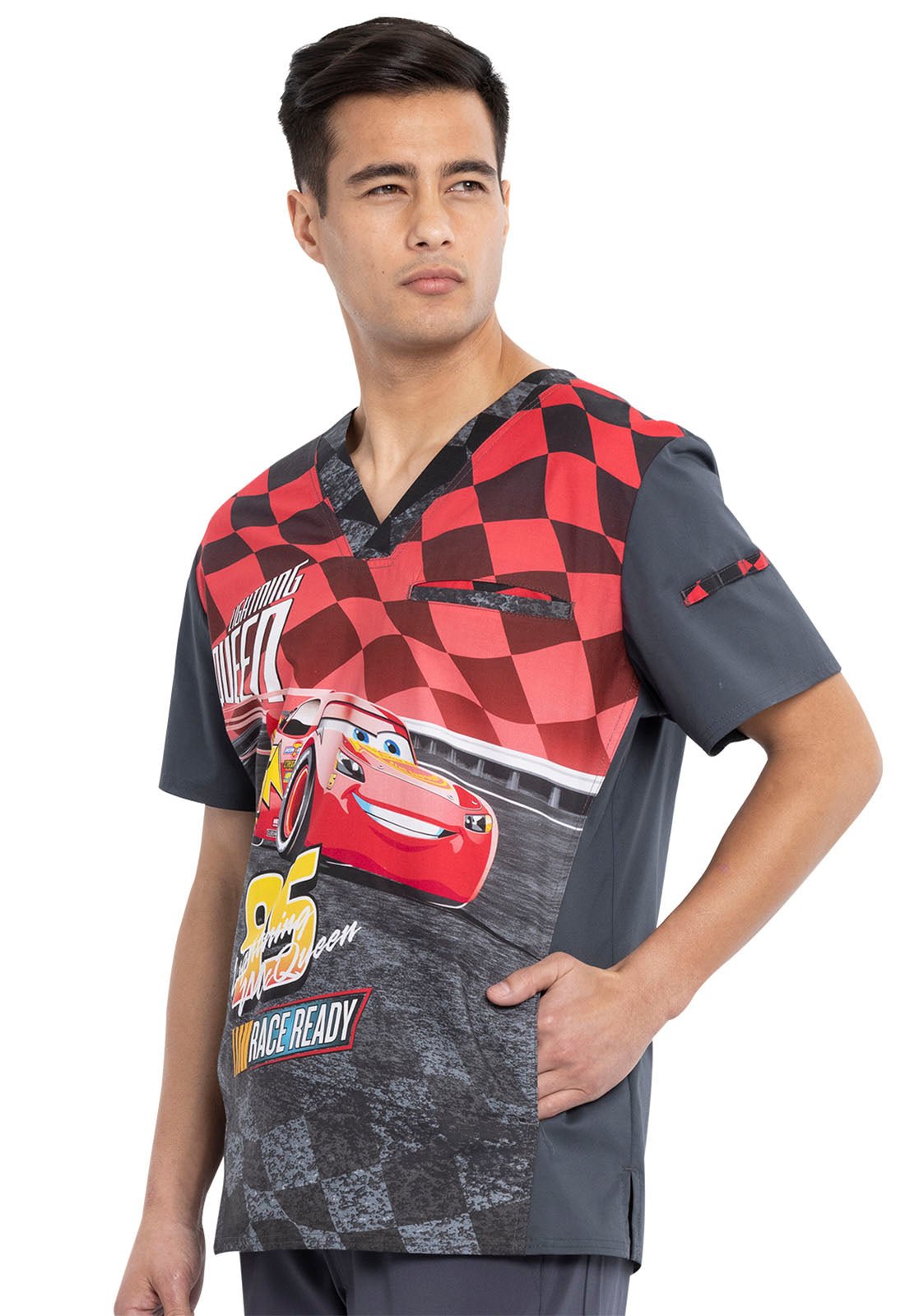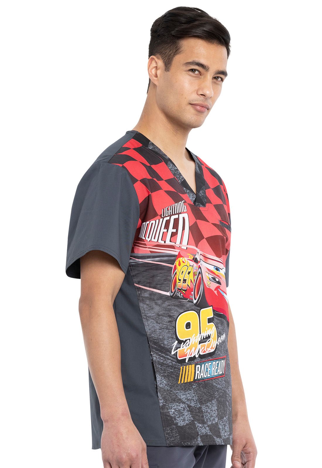 Lightning McQueen Tooniforms Disney Men's V Neck Scrub Top TF700 CSTQ