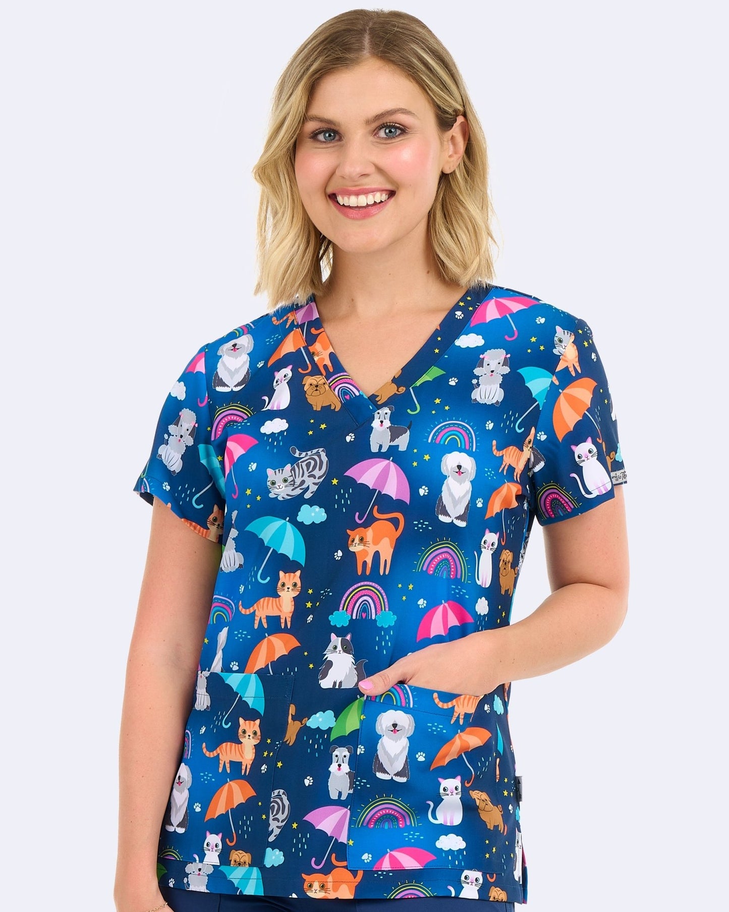 Raining Cats & Dogs Zavate Print Scrub V Neck Top 1054 RGCD