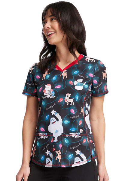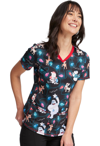 Rudolph Tooniforms Licensed Christmas V Neck Scrub Top TF784 RUIR