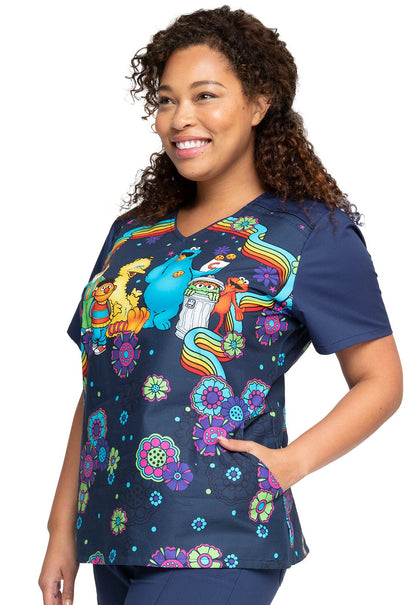 Sesame Street Cherokee Tooniforms Licensed V-Neck Scrub Top TF639 SWCG