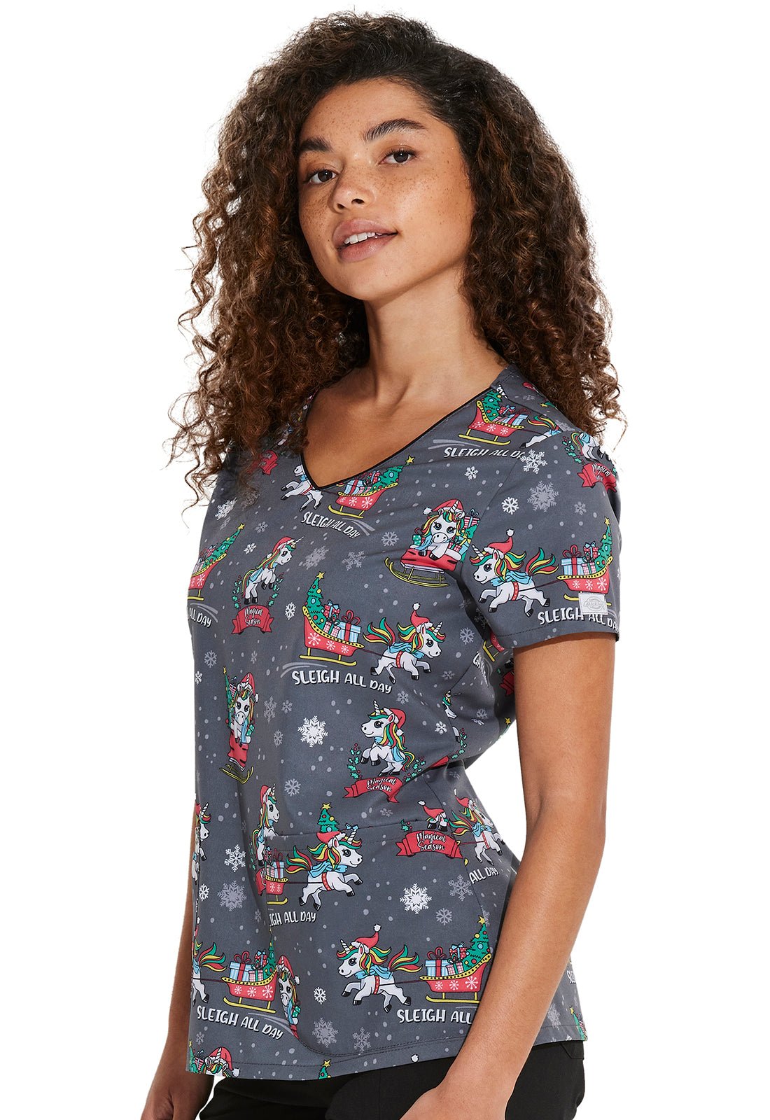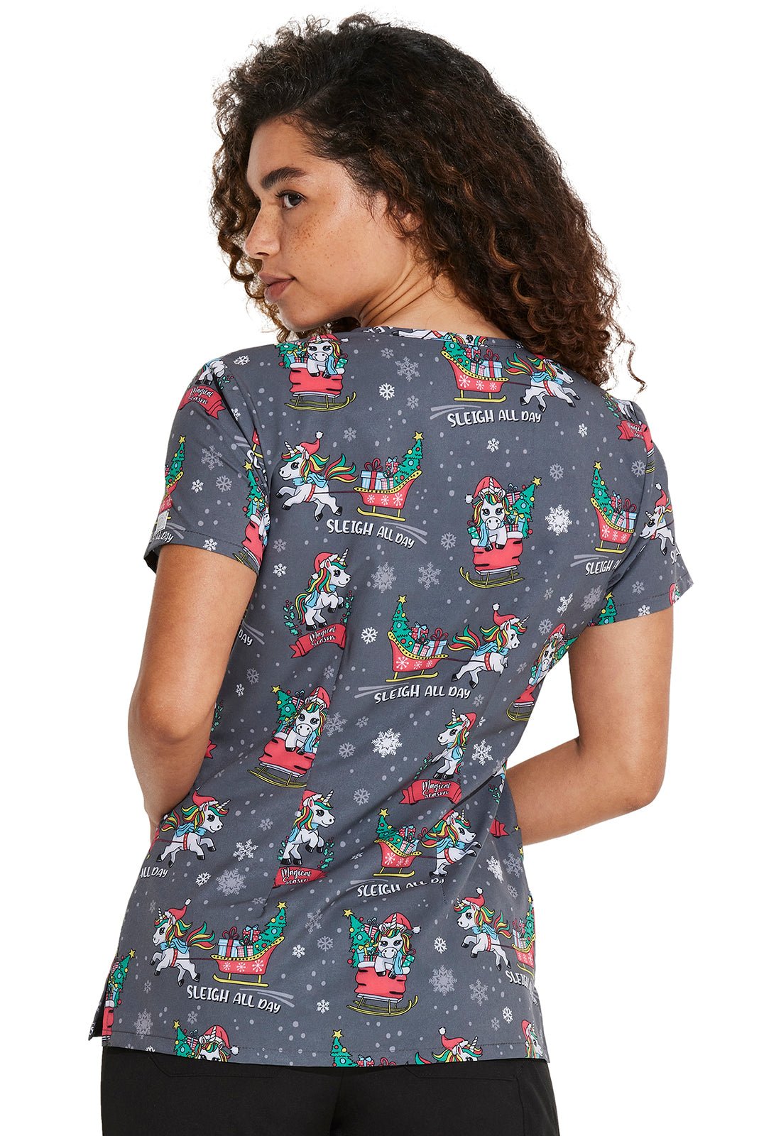Sleigh All Day Magic Dickies EDS Christmas Unicorn Print V Neck Scrub Top DK852 SGDM