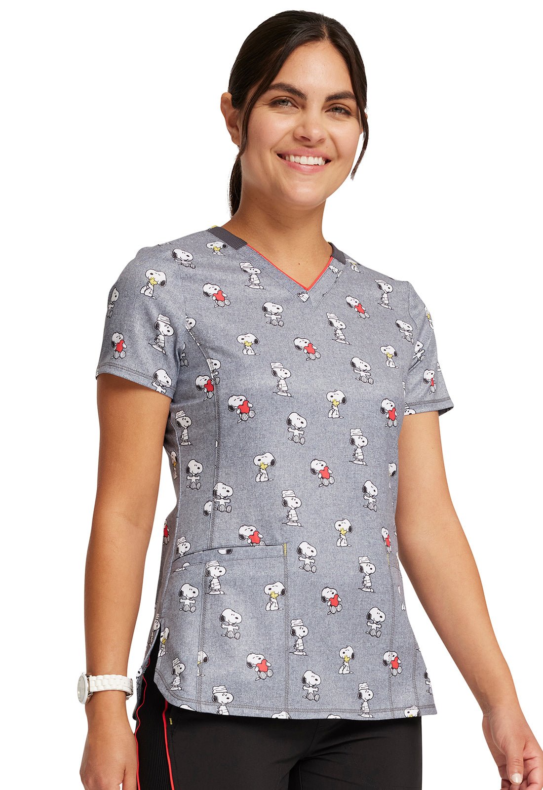 Snoopy Love Cherokee Peanuts Peanuts Infinity Print V Neck Scrub Top CK709 PNYV