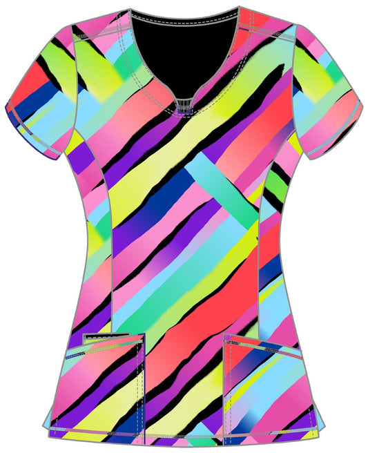 Garden Rainbow Cherokee Print V Neck Scrub Top CK703 GRRB