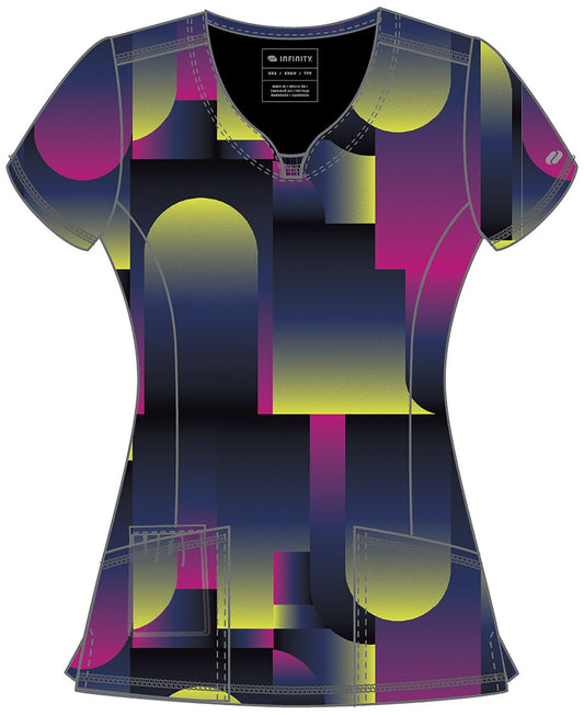 Dot's So Retro Cherokee iFlex Print V Neck Knit Panel Scrub Top CK732 DTSR