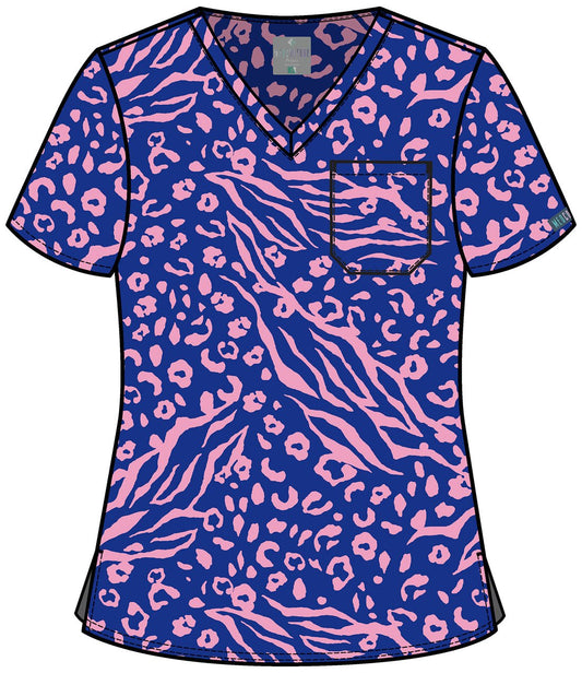 Marker Leopard Cherokee Print V Neck Scrub Top CK671 MRLP