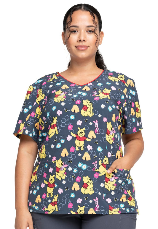 Tumble Around Cherokee Tooniforms Winnie The Pooh V Neck Scrub Top TF774 PHIO