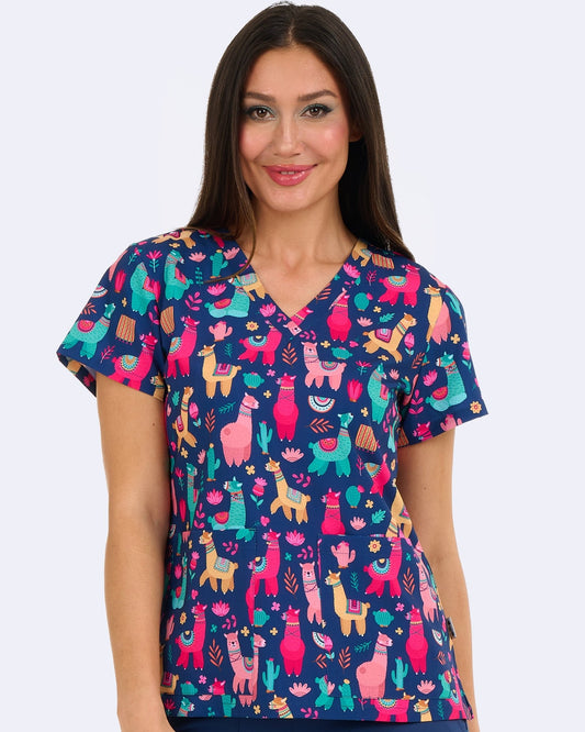Fa La La La Mingo Zavate Christmas Print Scrub V Neck Top 1054 FLAM