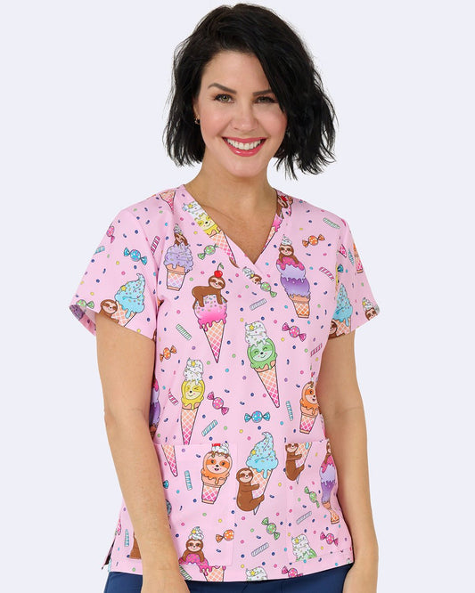 Sloths Delight Zavate Print Scrub V Neck Top 1054 SLDT