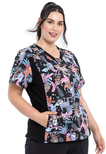 Cherokee iFlex V Neck Knit Panel Top in Don't Leave Me Hanging