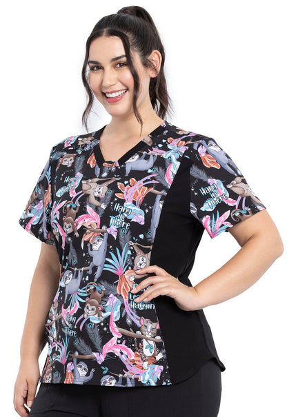 Animal Cherokee Print V Neck Knit Panel Scrub Top CK641 DNLV