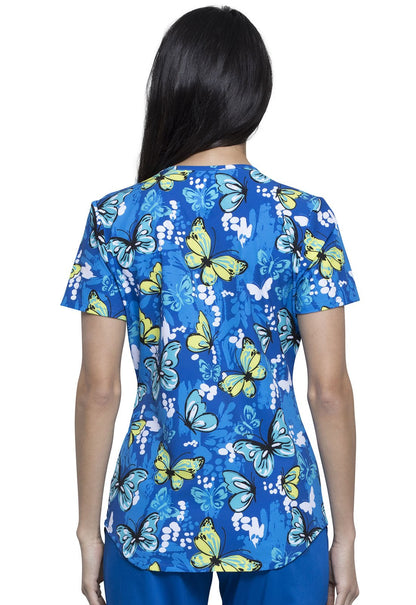 Butterfly Cherokee Print V Neck Scrub Top CK637 FLAZ