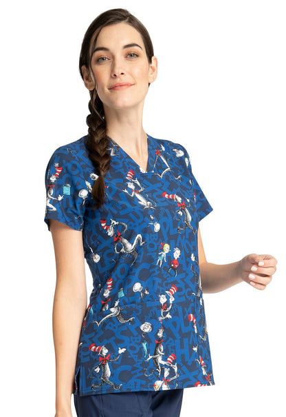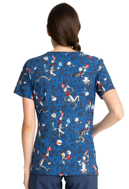Cat In The Hat Tooniforms Licensed Dr. Seuss V Neck Scrub Top TF738 SEJT