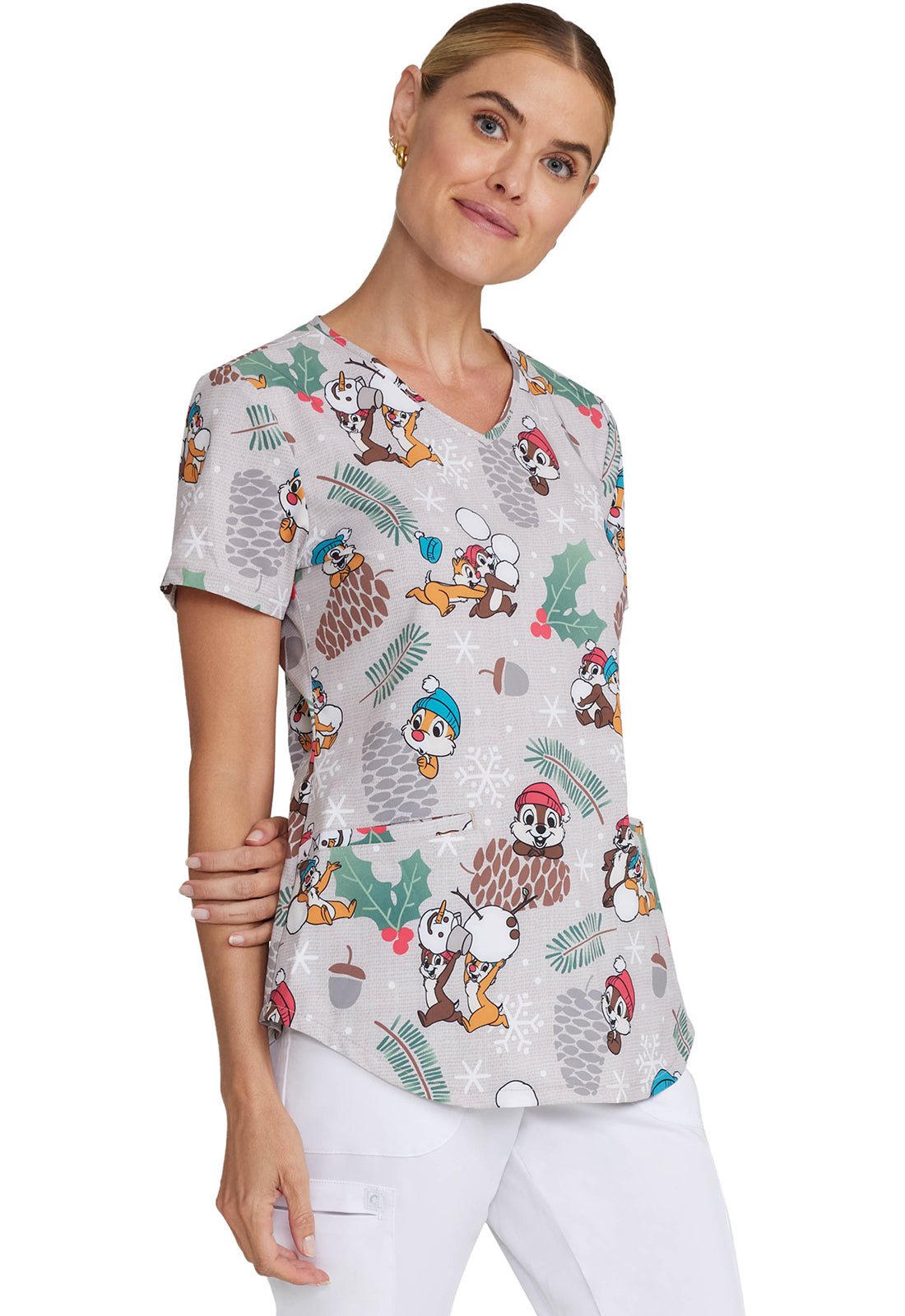 Cherokee Licensed Disney V Neck Top in Nuts About Winter
