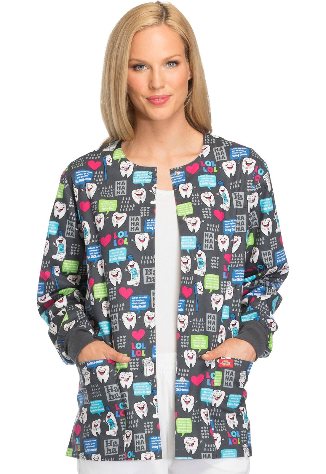 Dental Print Dickies Snap Front Scrub Jacket DK301 HALU