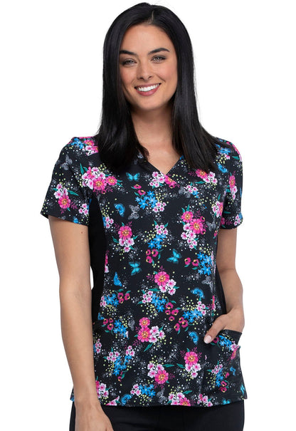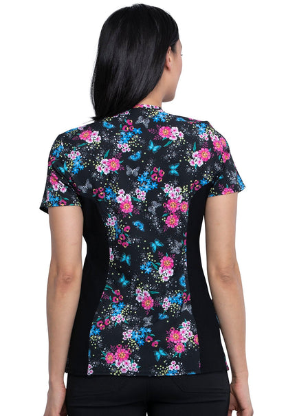 Floral Cherokee iFlex Print Mock Wrap Knit Panel Scrub Top CK642 AMTW