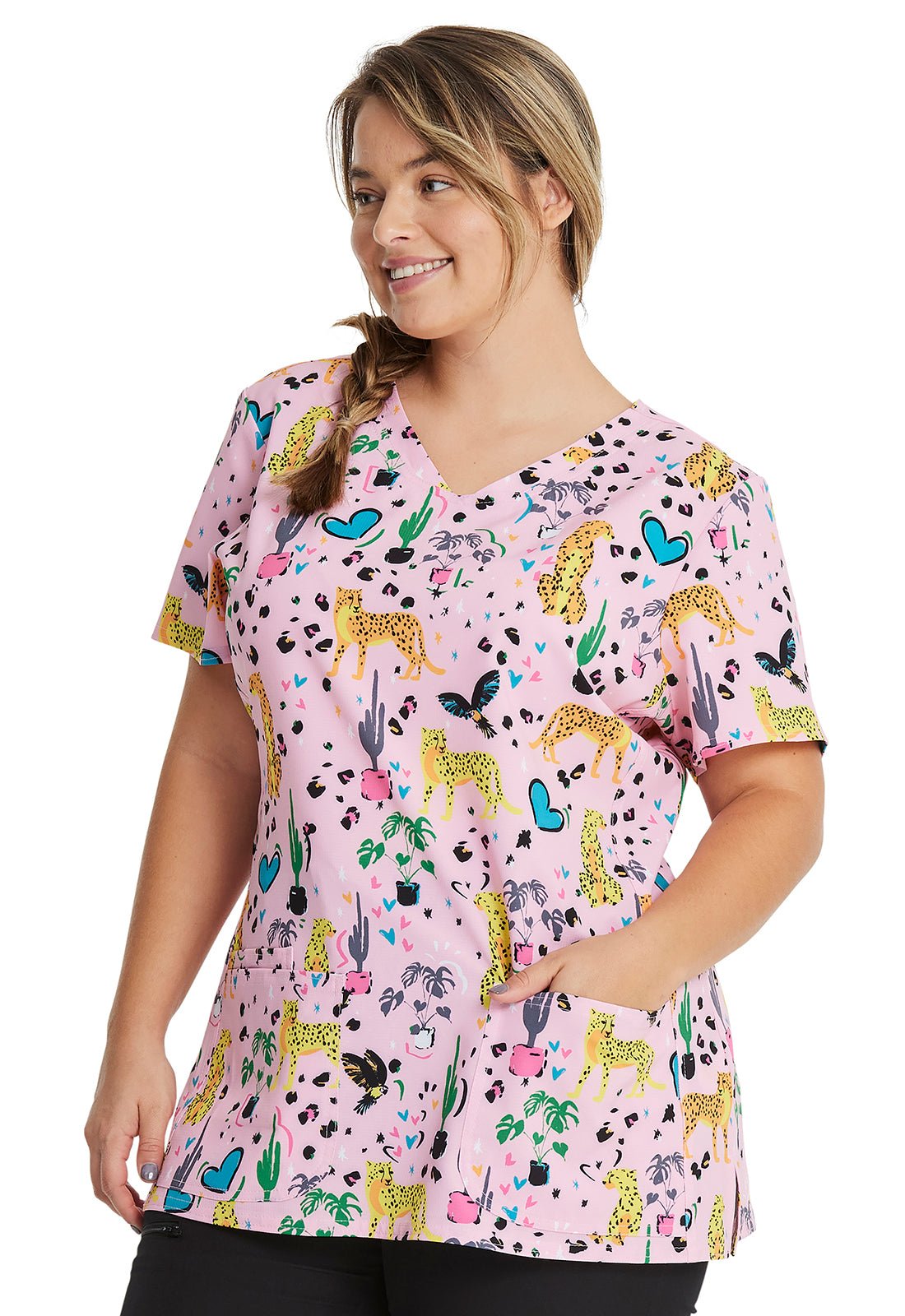 Jungle Of Love HeartSoul Animal Print V Neck Scrub Top HS614 JULV