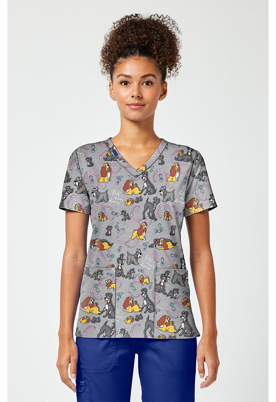 Lady and The Tramp Tooniforms Licensed Disney V Neck Scrub Top TF796 LAFH