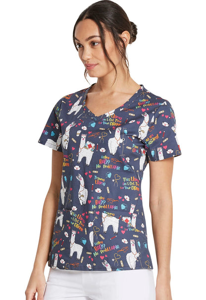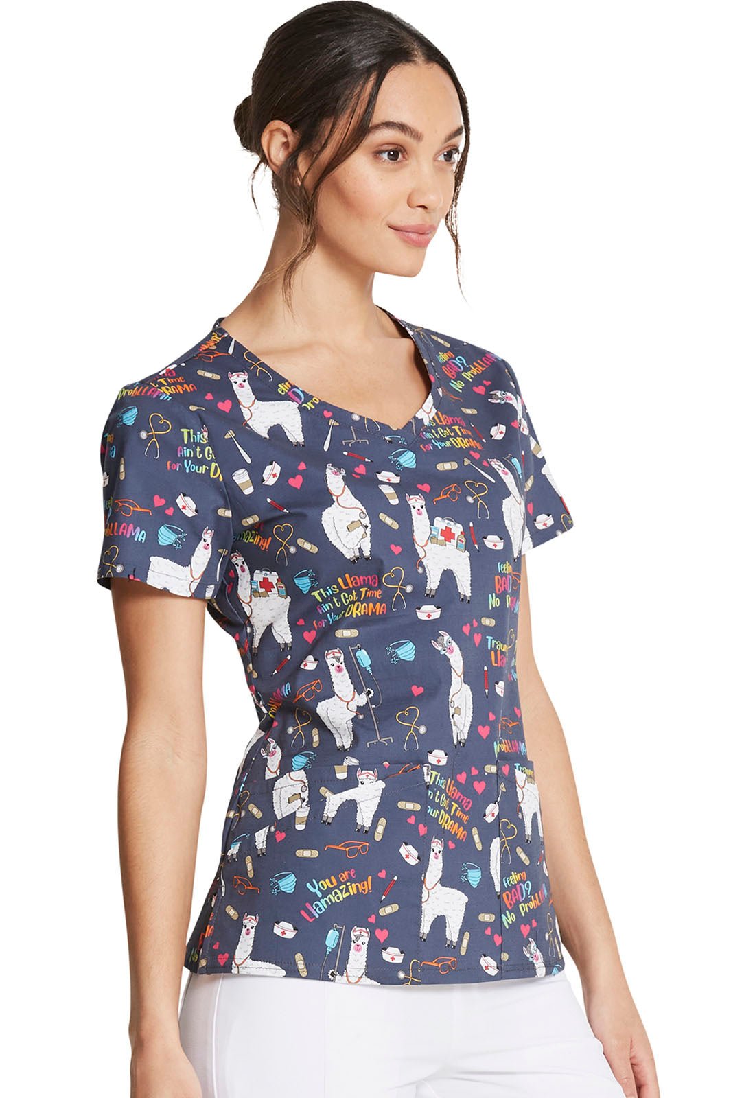 Llama Print Dickies EDS V Neck Scrub Top DK721 TRLL