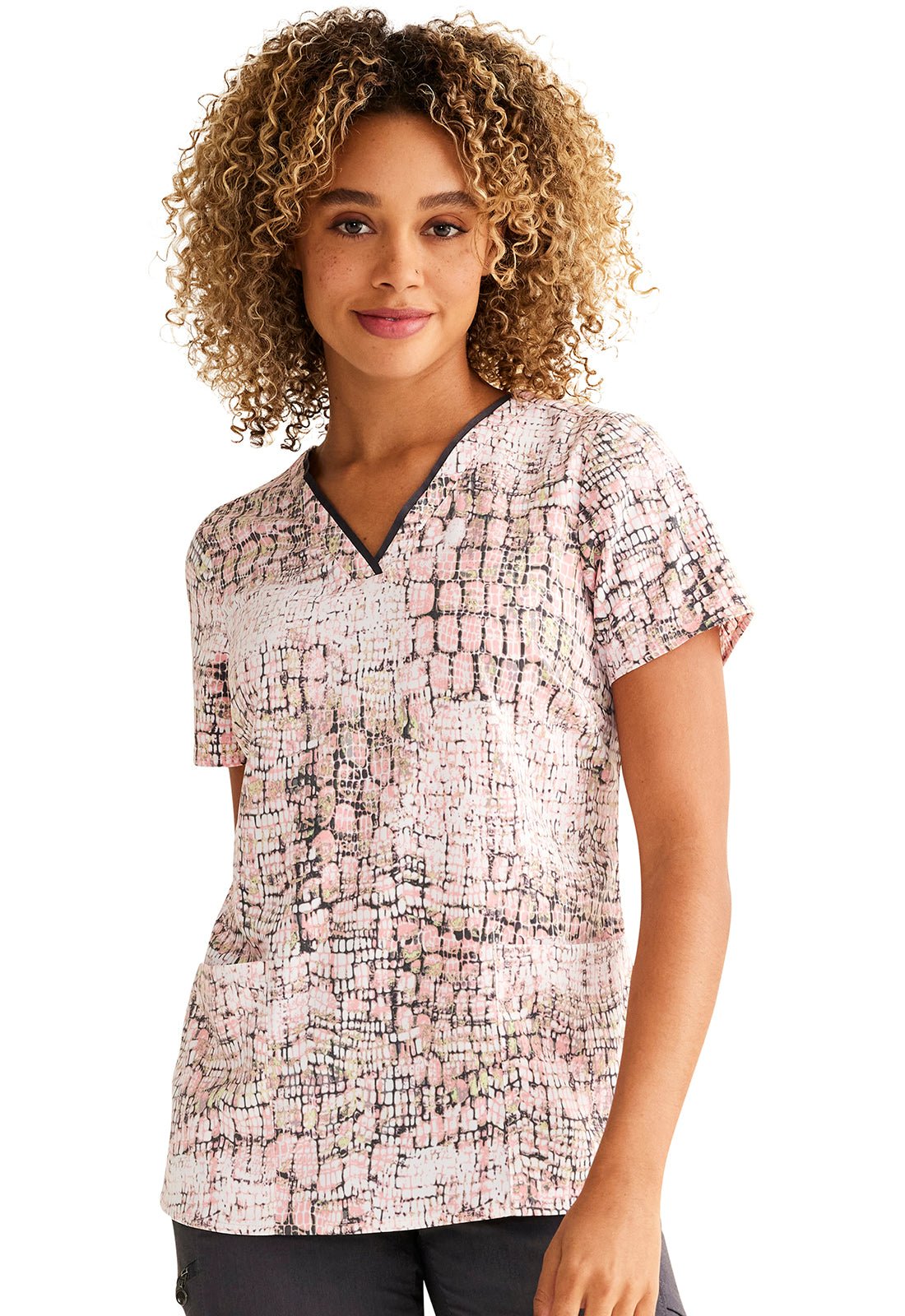 Loving My Skin Healing Hands Print Scrub V Neck Top 2266 LYSP
