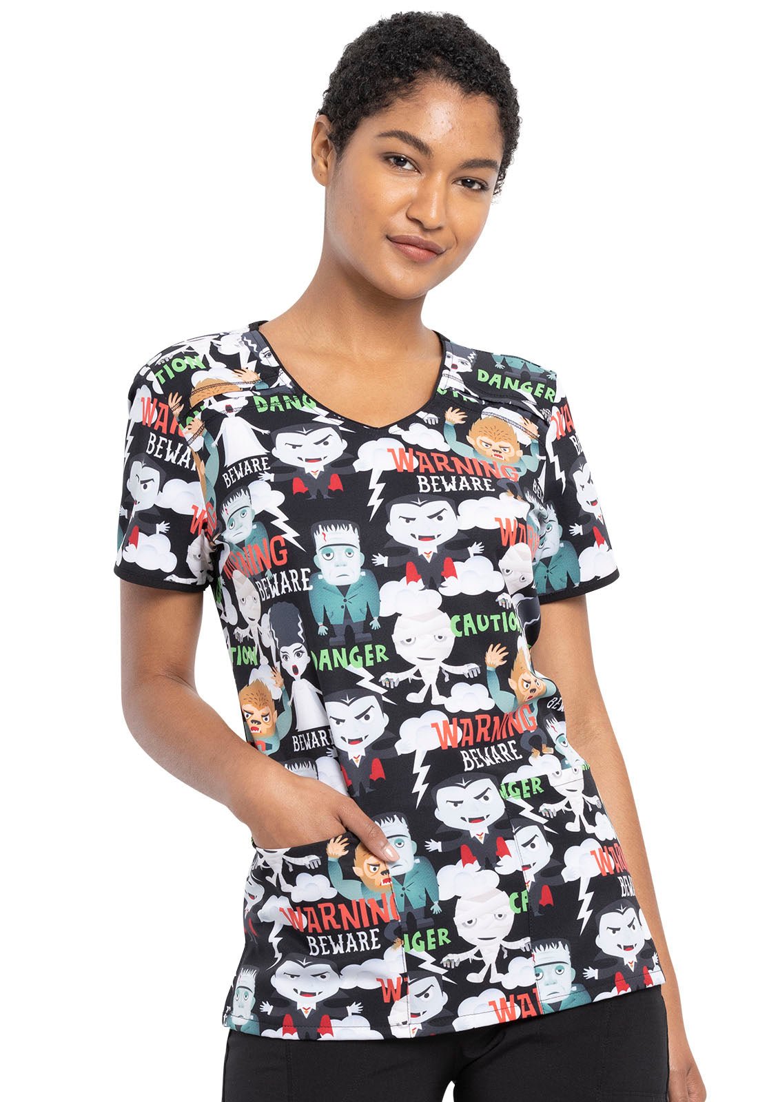 Cherokee Licensed V Neck Top in Beware Of Monsters
