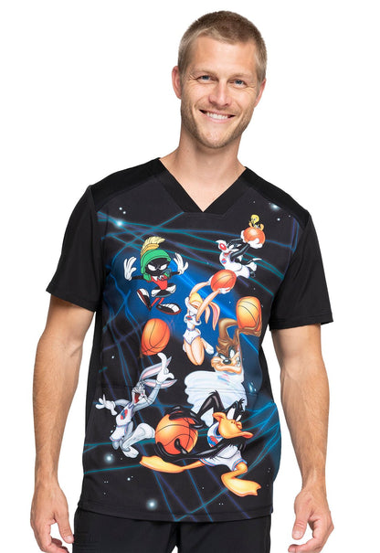 Space Jam Cherokee Tooniforms Looney Tunes Unisex V Neck Scrub Top TF714 LTSJ