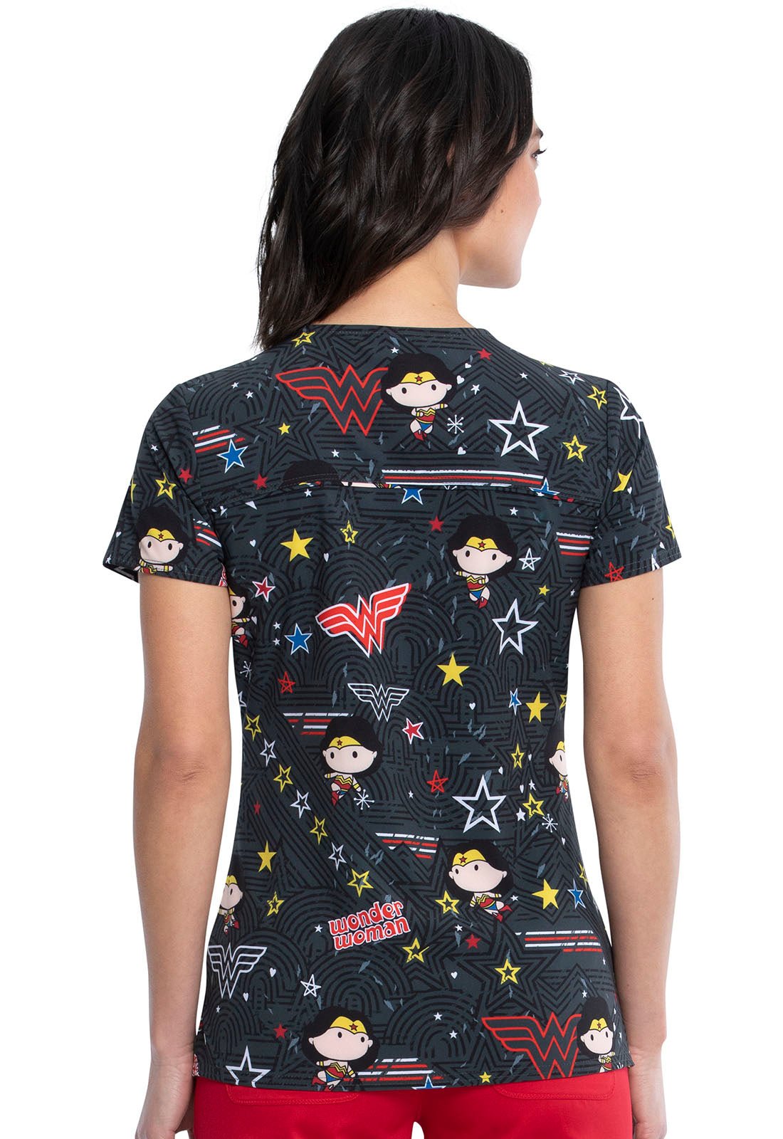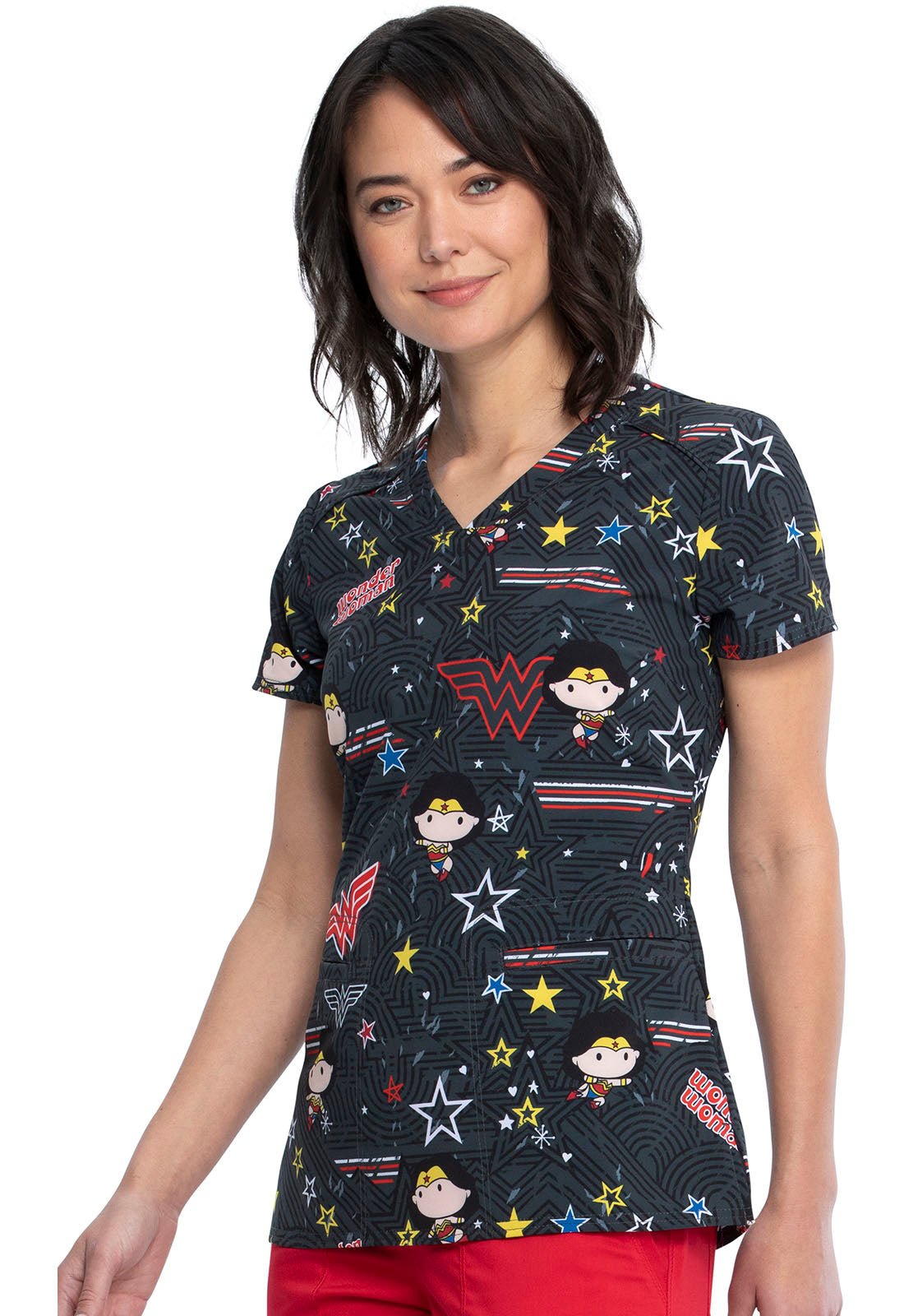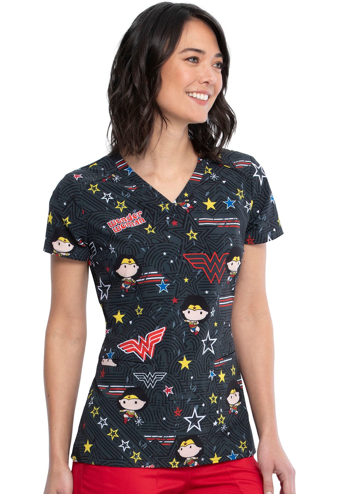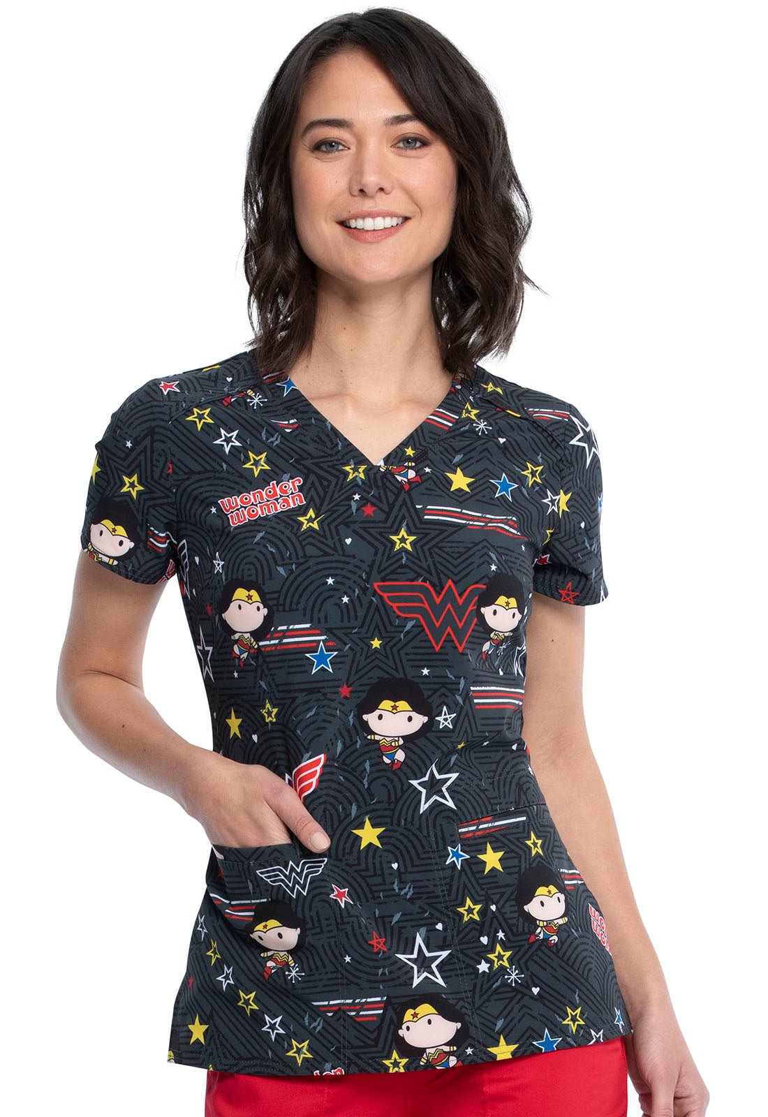 Wonder Woman Tooniforms Licensed DC Comics V Neck Scrub Top TF666 DMVO