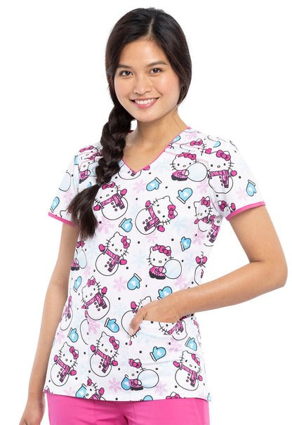Cherokee Licensed V Neck Top in Winter Hello Kitty