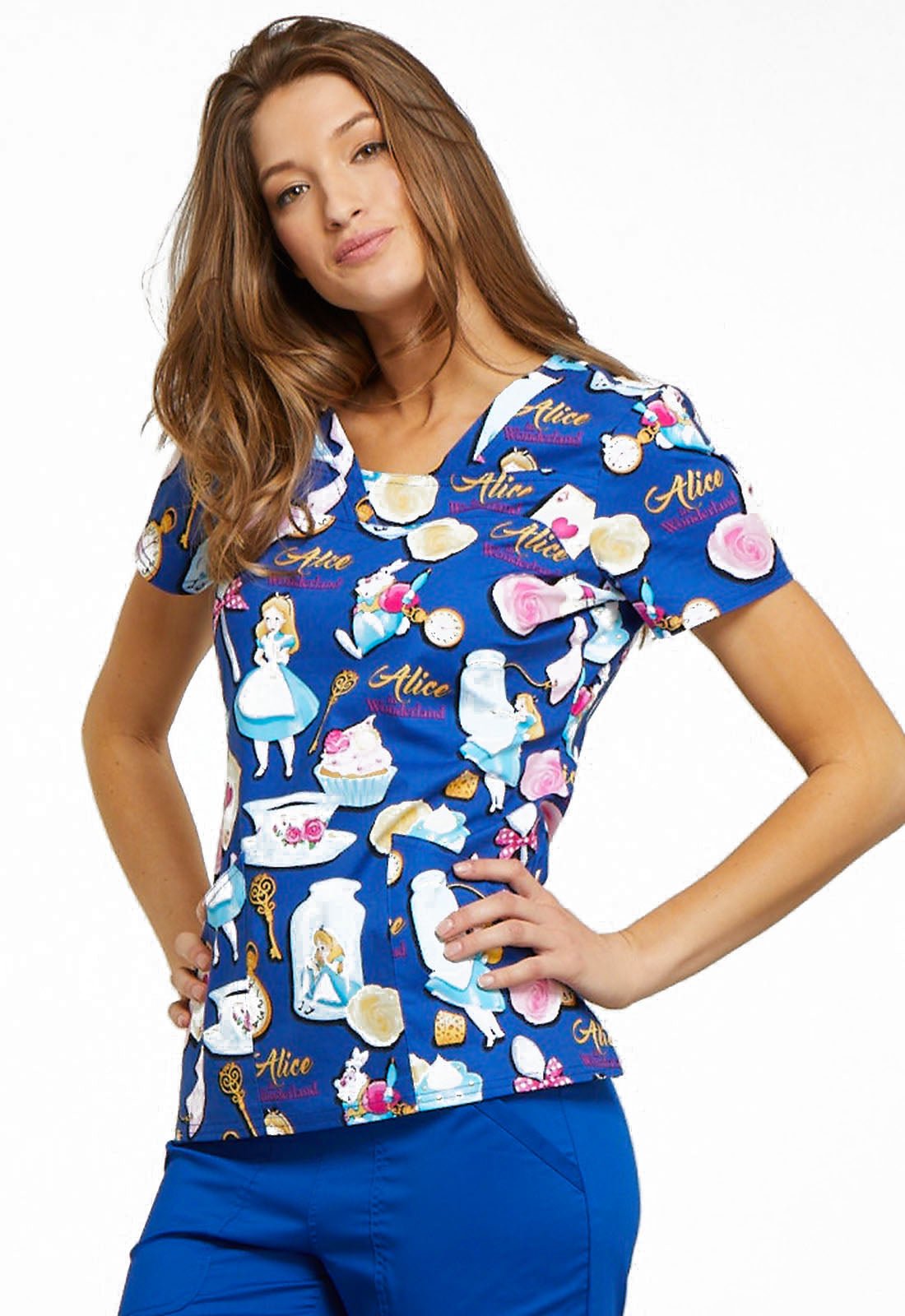 Alice in Wonderland Tooniforms Disney V Neck Scrub Top TF641 ALWA