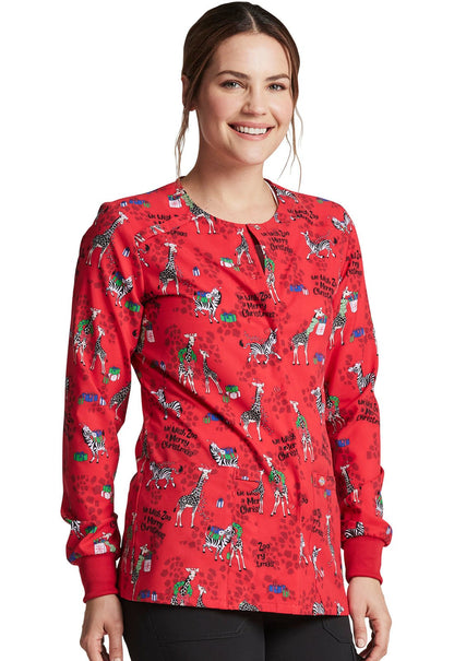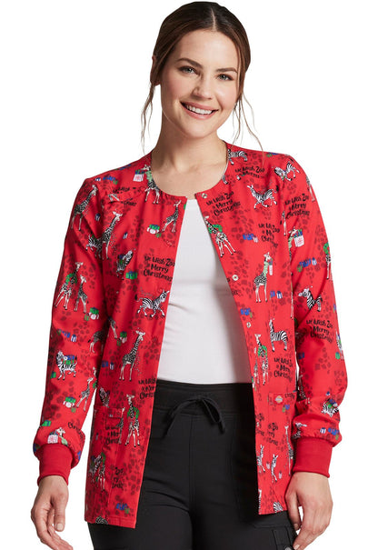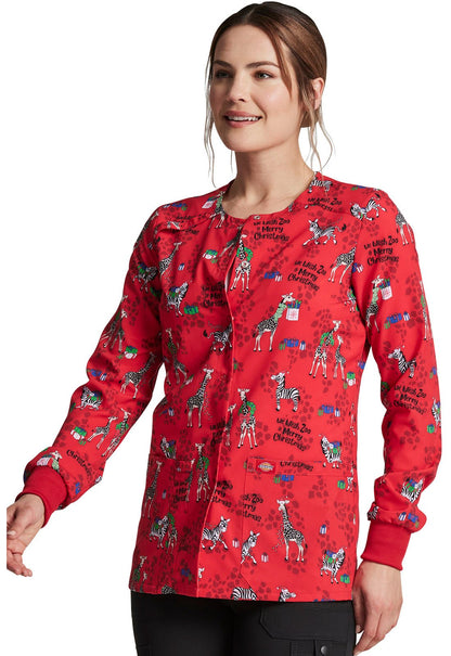 Animal Print Dickies Christmas EDS Snap Front Scrub Jacket DK309 WZMC