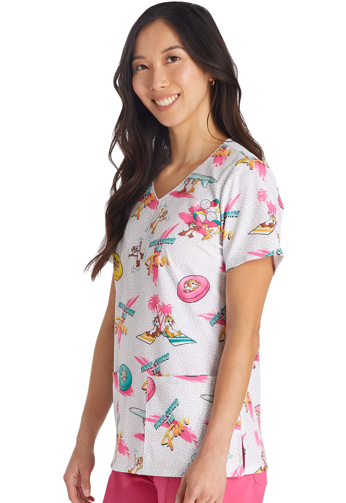 Cherokee Licensed Disney V Neck Top in Beach Fun