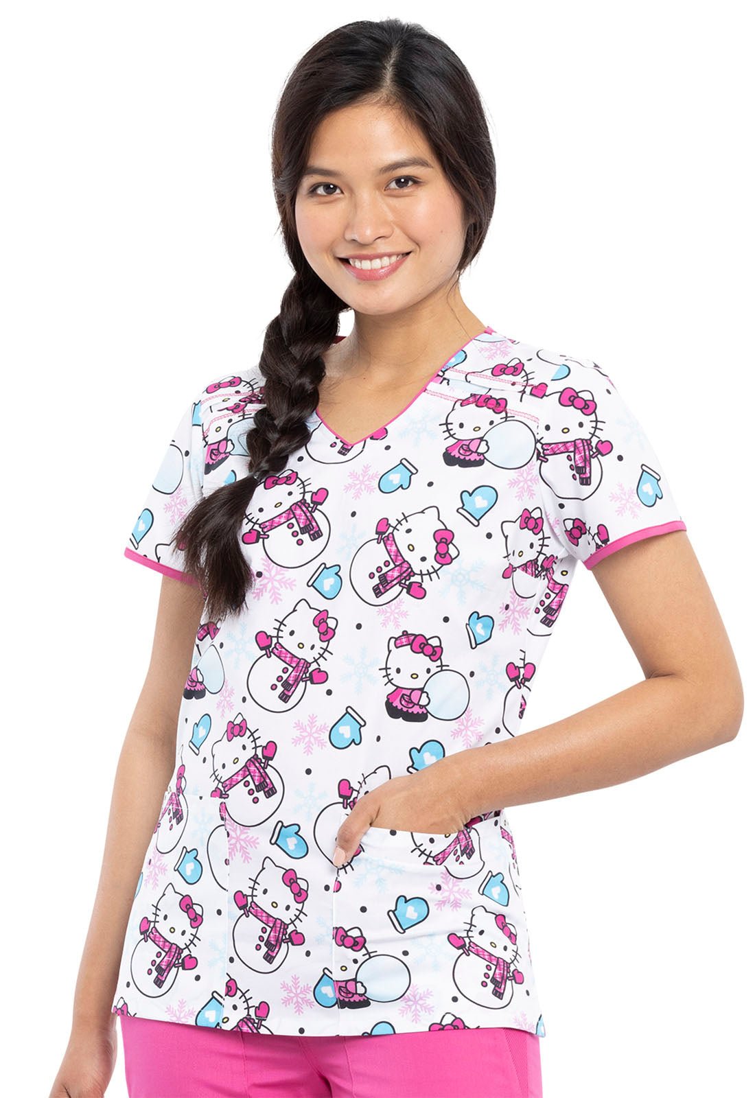 Cherokee Licensed V Neck Top in Winter Hello Kitty