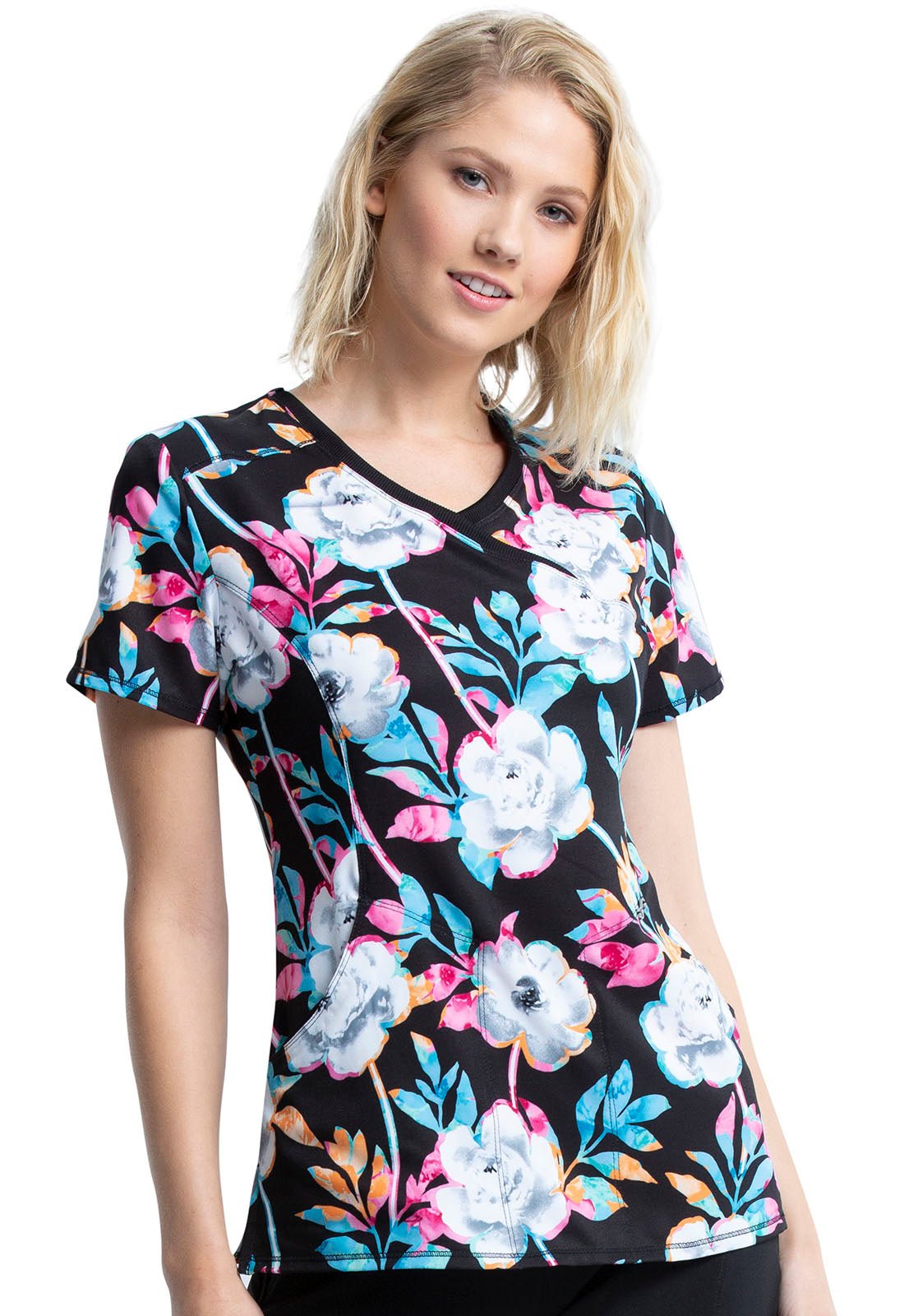 Colorful Blooms Cherokee Infinity Scrubs Mock Wrap Top CK608 CLFU