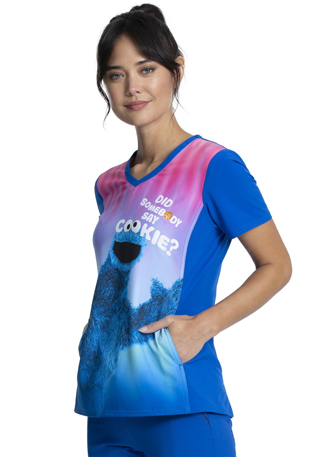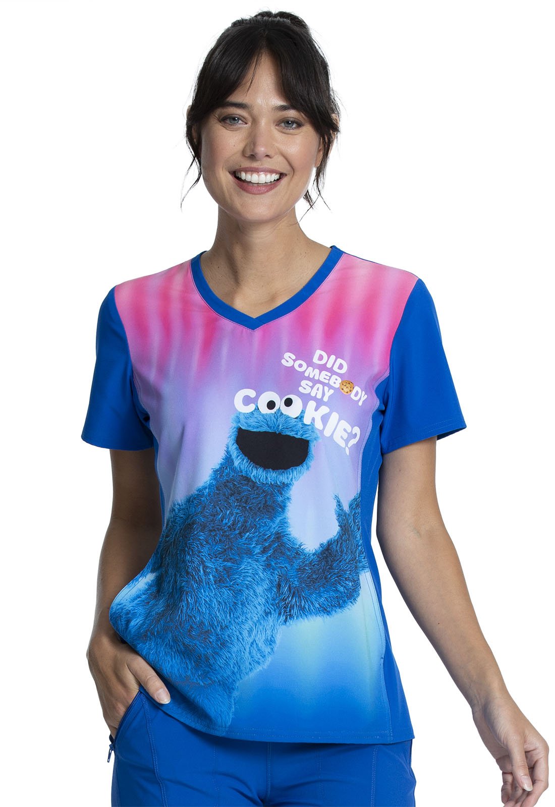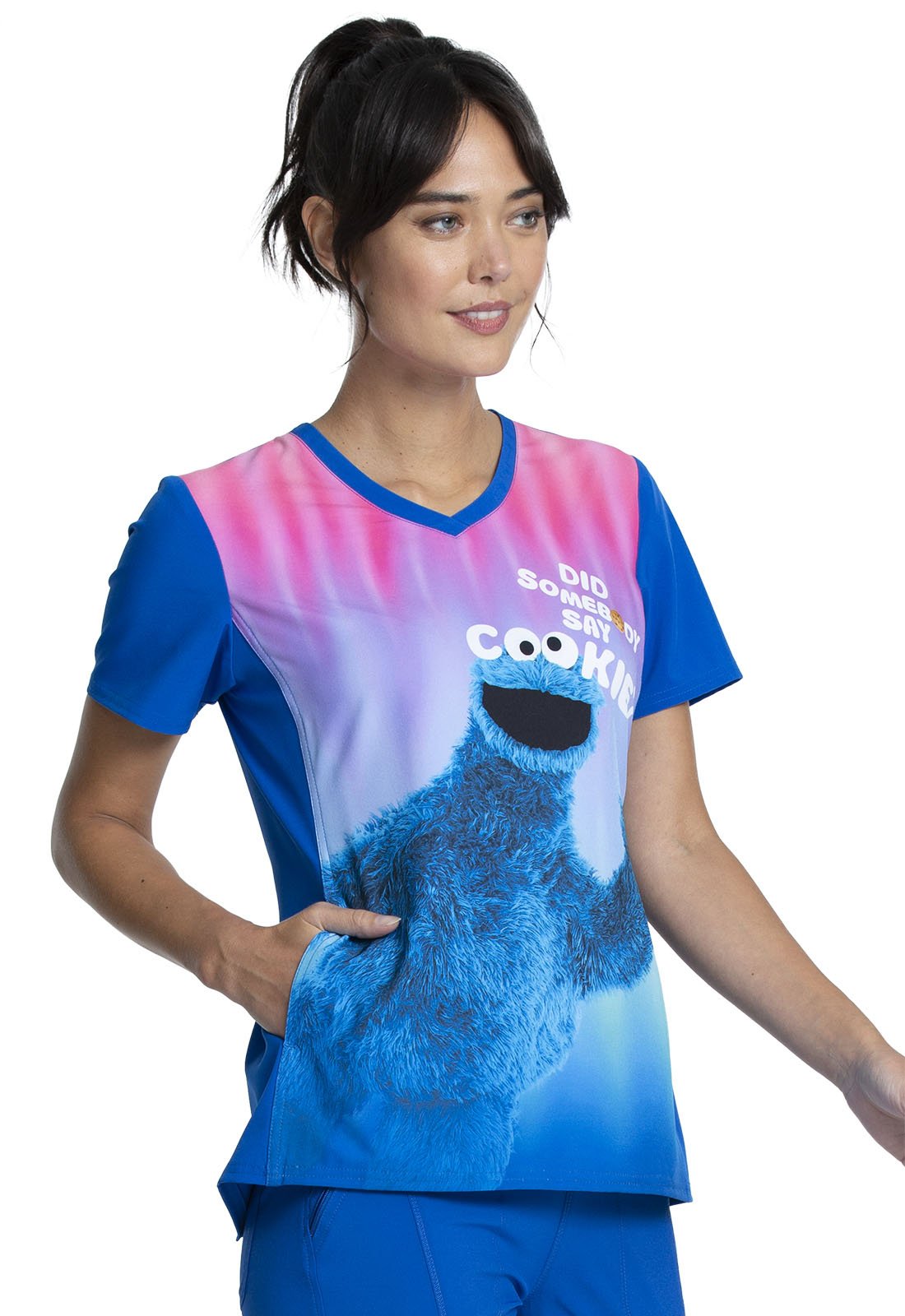 Cookie Monster Tooniforms Licensed Sesame Street V-Neck Scrub Top TF627 SWSL