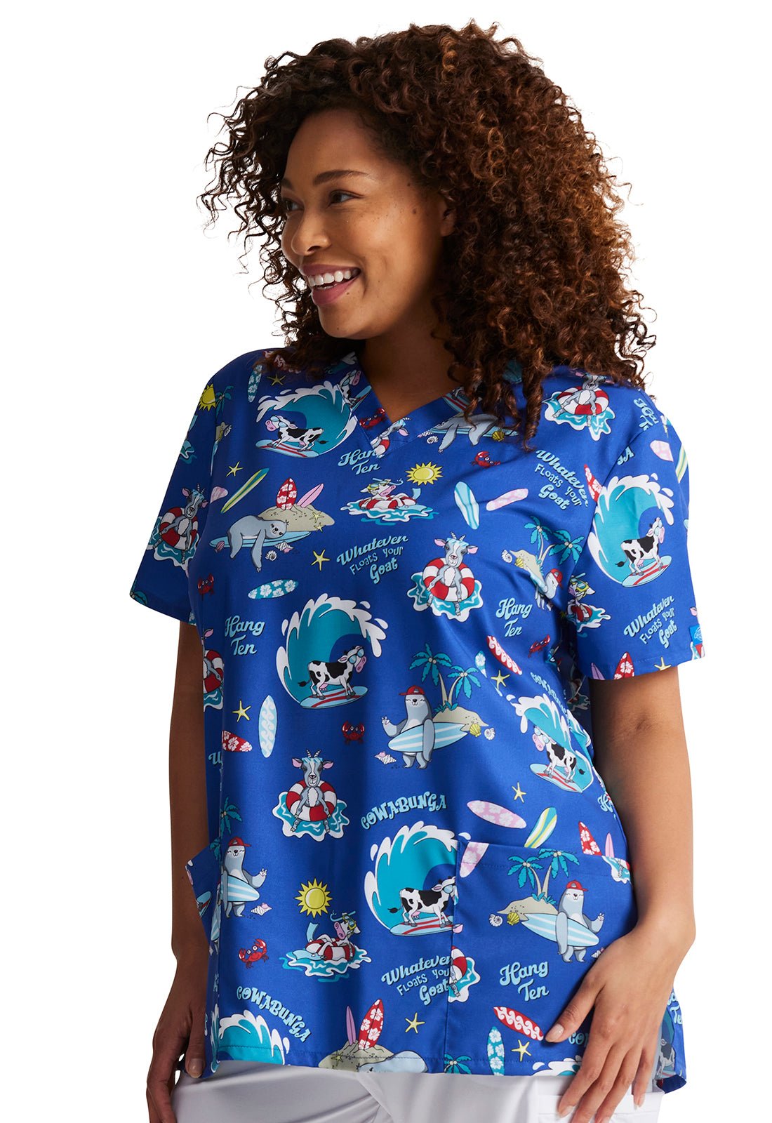 Cowabunga Friends Dickies Animal EDS Print V Neck Scrub Top DK717 CWFR