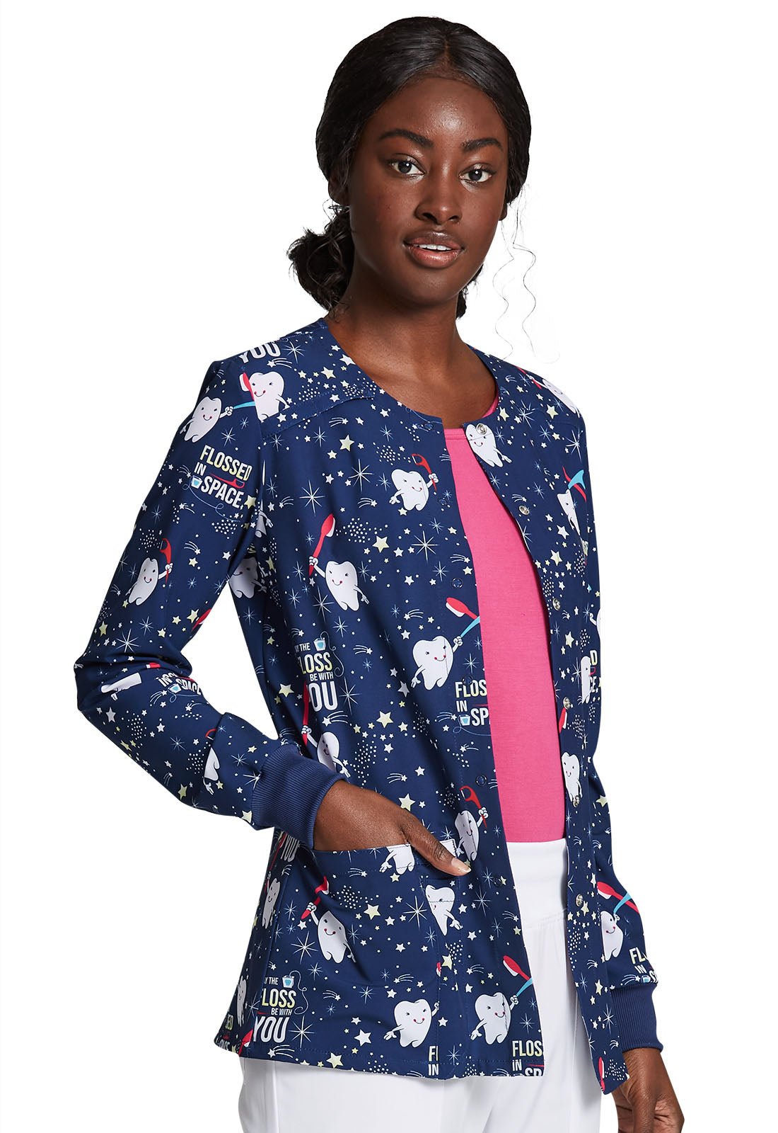 Dental Dickies Print Snap Front Scrub Jacket DK309 FLAE