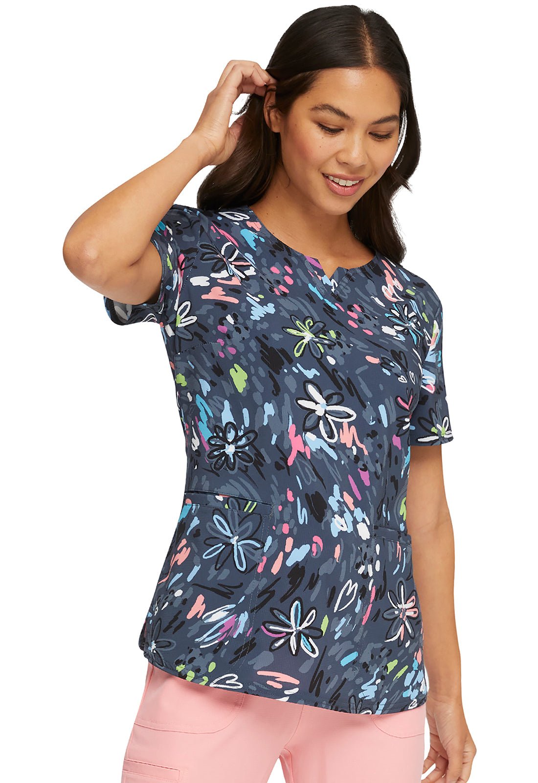 Doodle Heartsoul Print V Neck Scrub Top HS821 DDBM