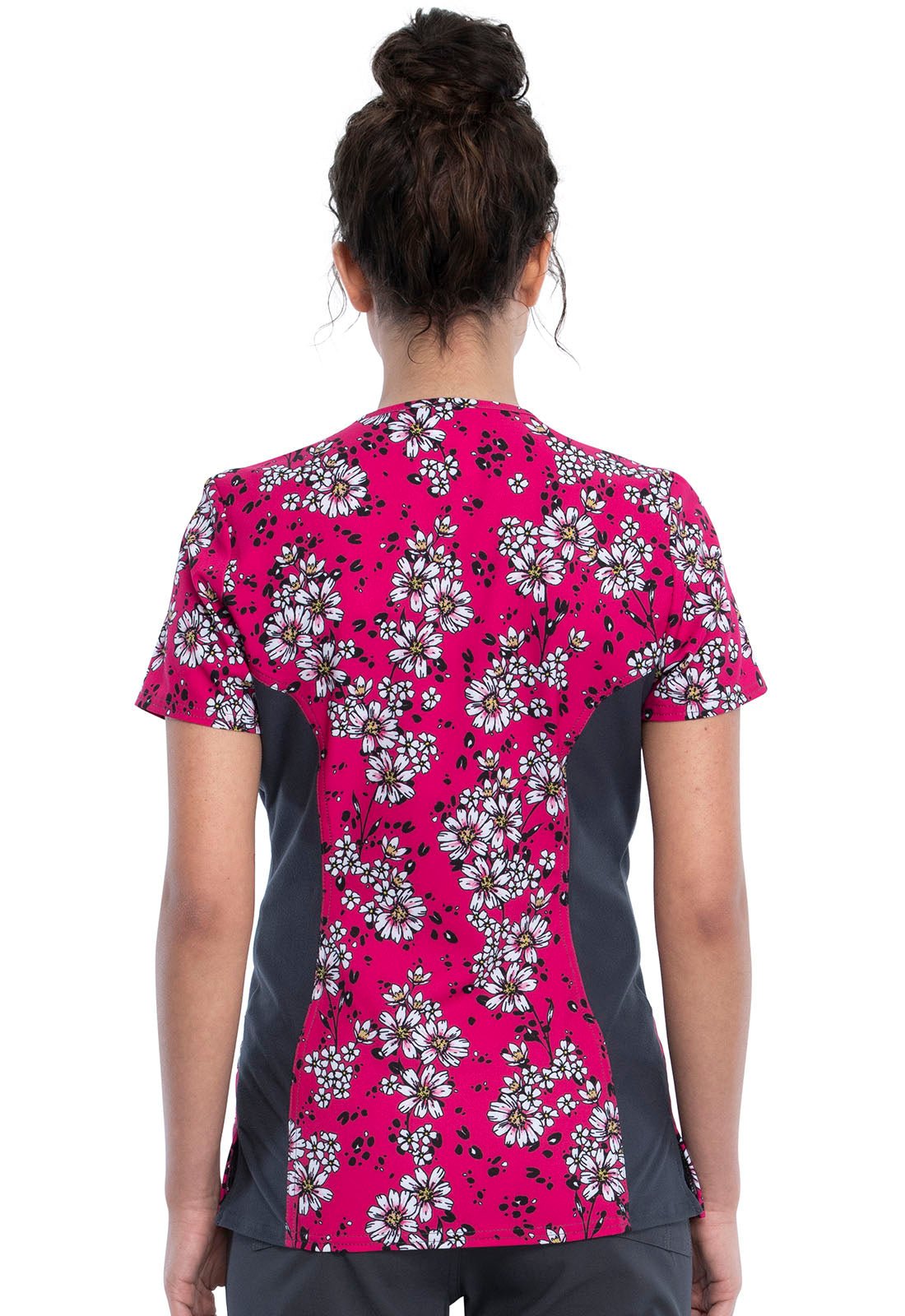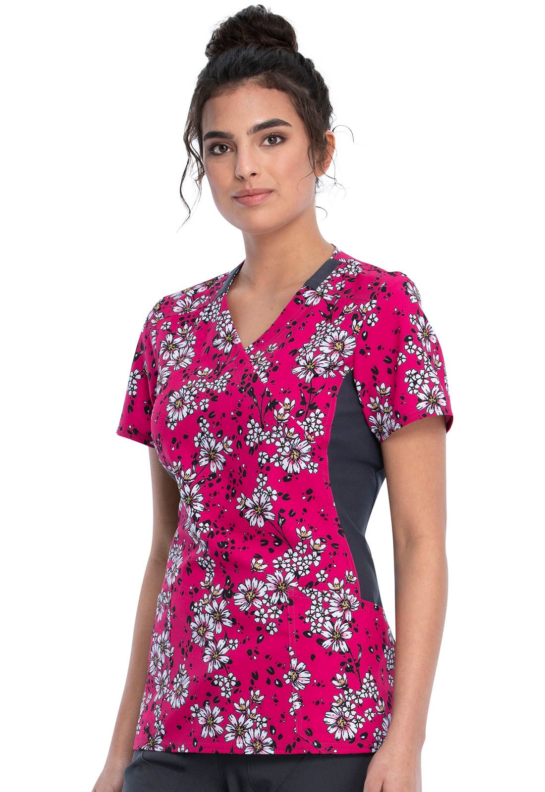 Floral Cherokee iFlex Print Mock Wrap Knit Panel Scrub Top CK642 WAVW