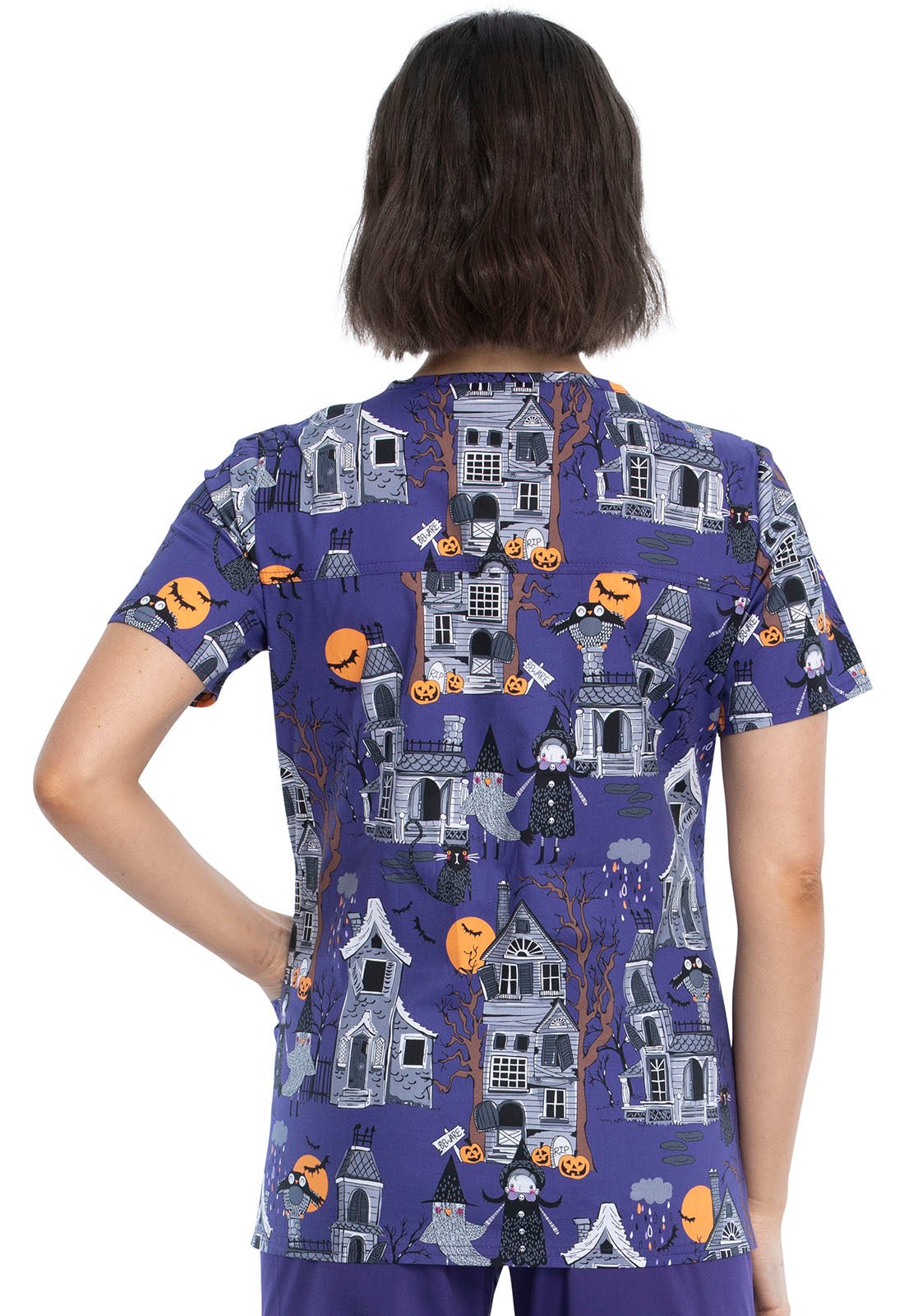 Haunted Halloween Print V Neck Scrub Top CK651 HAUH