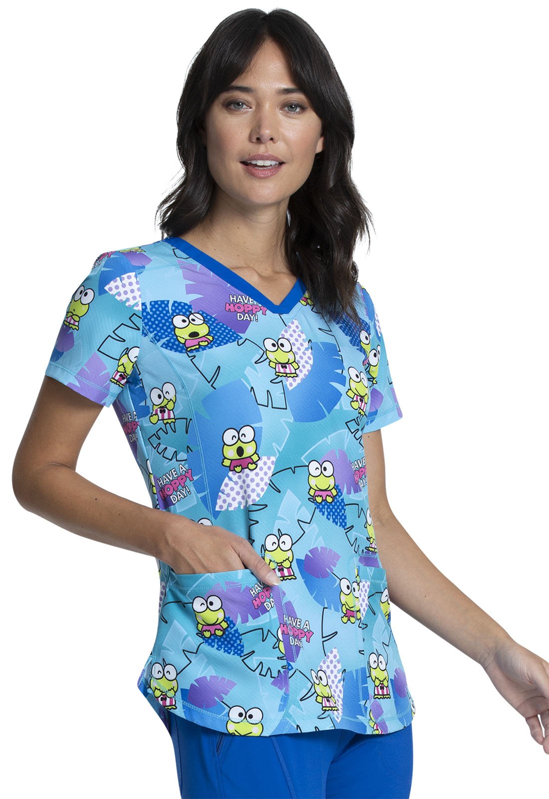 Cherokee Licensed Sanrio V Neck Top in Keroppi Tropical