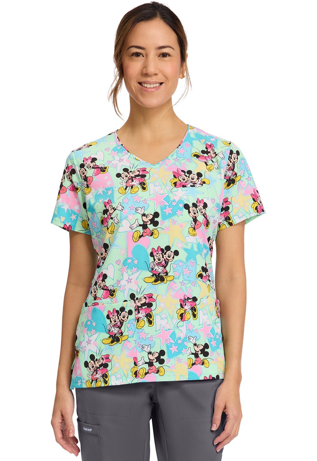 MIckey Minnie Mouse Cherokee Tooniforms Disney V Neck Scrub Top TF614 MKGV