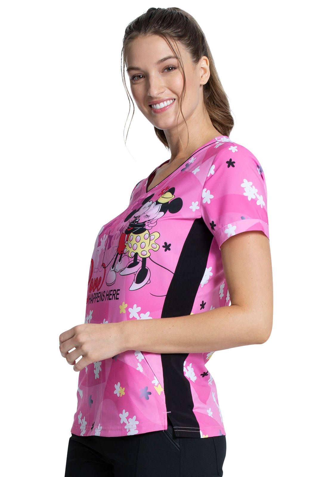 Mickey & Minnie Mouse Tooniforms Licensed Disney Valentines V Neck Scrub Top TF747 MKLH