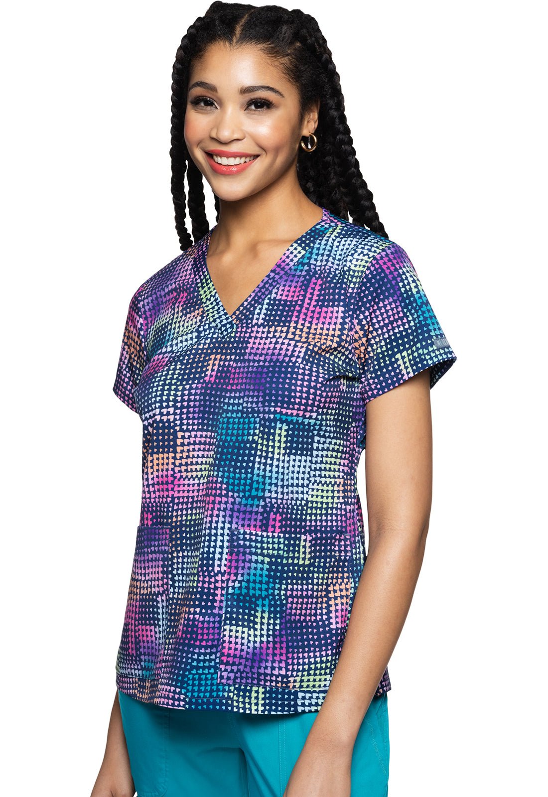 Rainbow Patch Med Couture Print V Neck Scrub Top MC8564 RWPT